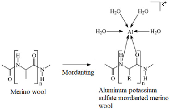 Chemical structure of merino wool fiber mordanted with aluminum potassium sulfate.