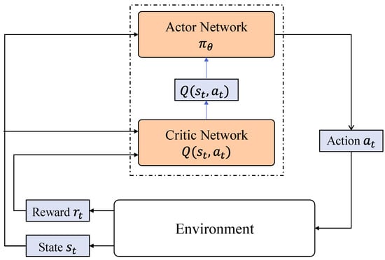 As shown in Figure 1, the actor is responsible for determining the action that the agent should take in a given state. It directly learns and optimizes a parameter-based policy , i.e., a probability distribution or deterministic action for selecting an action in state . The actor improves its policy by maximizing the expectation of the cumulative reward, often using a policy gradient method to update parameters.