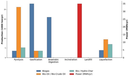 - AlNouss, A.; Alherbawi, M.; Parthasarathy, P.; Al-Thani, N.; McKay, G.; Al-Ansari, T. Waste-to-energy technology selection: A multi-criteria optimisation approach. Comput. Chem. Eng. 2024, 183, 108595. [Google Scholar] [CrossRef]