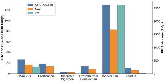 - Nordahl, S.L.; Devkota, J.P.; Amirebrahimi, J.; Smith, S.J.; Breunig, H.M.; Preble, C.V.; Satchwell, A.J.; Jin, L.; Brown, N.J.; Kirchstetter, T.W.; et al. Life-Cycle Greenhouse Gas Emissions and Human Health Trade-Offs of Organic Waste Management Strategies. Environ. Sci. Technol. 2020, 54, 9200–9209. [Google Scholar] [CrossRef] [PubMed]