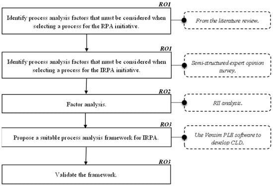 - RO1: Identify the process analysis factors that help to select the most suitable process for IRPA;