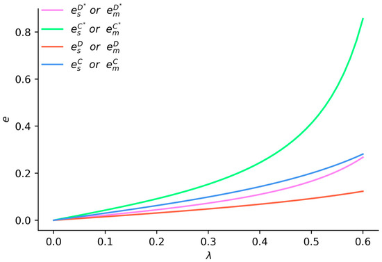 (3) The cost of emission reduction R&D exhibits a quadratic relationship with the level of emission reduction. The R&D cost coefficient for the supplier is and for the manufacturer, it is . Thus, the emission reduction costs for the supplier and the manufacturer are denoted as and [19], respectively. The similarity in R&D cost coefficients for upstream and downstream firms does not affect the key results and conclusions. It is assumed that .