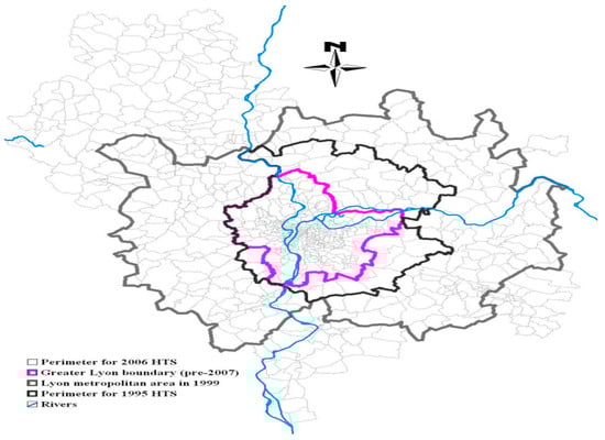 Contemporary urban expansion involves the ongoing growth of cities’ spheres of influence and operational areas, with the boundaries of daily activities lacking temporal stability. To analyze the sources of observed disparities accurately, a longitudinal study across different time frames is ideal. However, limitations in data availability from the last two household travel surveys, which may not fully reflect daily activities, support an analysis based on the perimeter defined by the 1995 Household Travel Survey (Figure 1). While this approach provides spatial comparability, it does not account for phenomena extending beyond the original boundary, leaving changes in CO2 emissions related to peripheral daily mobility unaddressed.