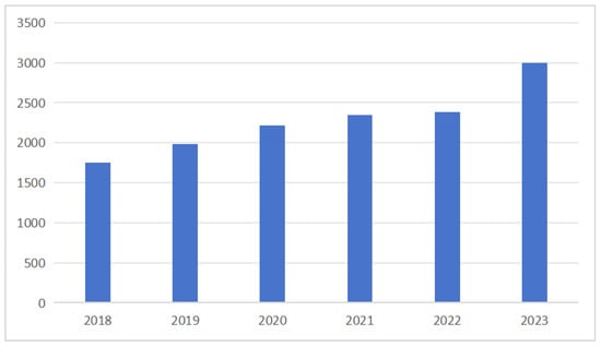 Currently, China has nearly 300 million children [60] and a pan-ACG (animation, comics, and gaming) audience of nearly 500 million [7], making the country a key target for competition from major animation powers, such as the United States and Japan. The growing market demand provides ample room for the animation industry to develop. From 2020 to 2022, the number of domestically produced animated films released exceeded that of foreign films [7] (Figure 3), and the revenue gradually increased (Figure 4). Therefore, actively adjusting the industry model, maintaining steady growth, and forming a sustainable development strategy to enhance the industry’s competitiveness are key priorities for the future development of the industry.