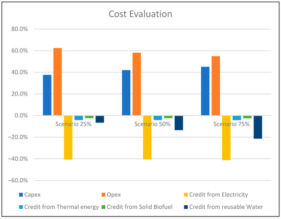 The capital cost of the new processes includes both direct (main equipment purchase, delivery, installation, and auxiliary units), and indirect (engineering, supervision, etc.) costs [50]. To calculate CAPEX, a straight-line depreciation model (10 years) was applied.