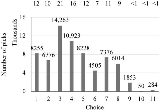 The choice ‘Stagnating EU agricultural production and increasing dependency on imports’ received the most interest, followed by ‘Natural resource scarcity or degradation (water, soil, fish stock, biodiversity, etc.)’. All nine options offered had a noteworthy number of picks, and therefore, it can be assumed that all the options are very relevant for EU citizens. The options ‘Other’ and ‘Don’t know’ had marginal numbers of picks and were, therefore, excluded from further analysis.