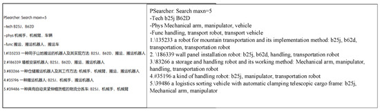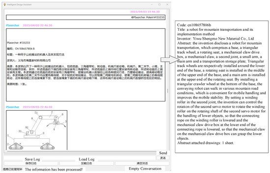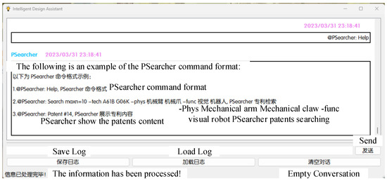 - The patent search command is used to search for patent documents that contain key conceptual elements. The corresponding patent number, title, and key design concepts are given in the system response.