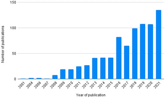 Publications on climate justice over the years (2000–2021). Source: Web of Science, Scopus, Scielo, ScienceDirect, and Google Scholar databases. Elaborated by the authors.