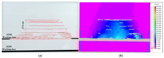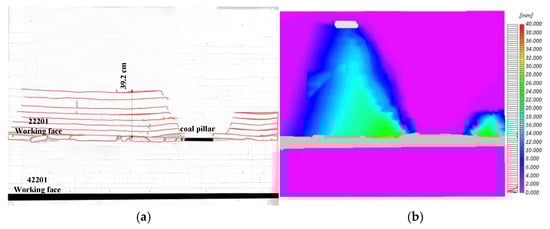 The height of the fracture zone and the displacement of the overlying rock after mining in the 22201 and 42201 working faces are shown in Figure 4. DIC analysis and result visualization were realized by MultiDIC software.