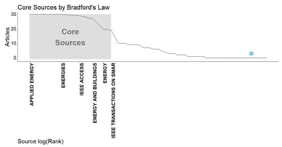 Bradford’s Law [] (Appendix G) revealed the group of the six most relevant journals, called Core Sources, as shown in Figure 6. These journals published the most articles related to the topic of load profile categorization and the energy theft detection; this answers Question 4 in Section 1.