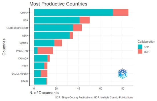 So, China and USA are the most productive countries. They have the strongest collaboration in the network. Moreover, both countries are connected to all clusters, which emphasizes a prolific international collaboration, resulting in a huge number of cited references. Although China and the USA are highly productive, according to Table 1, the most productive author is from Pakistan, a country assigned to Group 3. To corroborate these observations, Figure 9 (Appendix J) illustrates the top 10 most productive countries in terms of SCPs (Single Country Publications) and MCPs (Multiple Country Publications or International Collaboration).