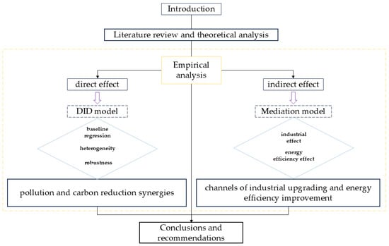 Figure 1 shows the research framework of this article. The subsequent sections will follow the structure of a literature review, theoretical analysis and research hypotheses, research design, empirical results, and policy recommendations.