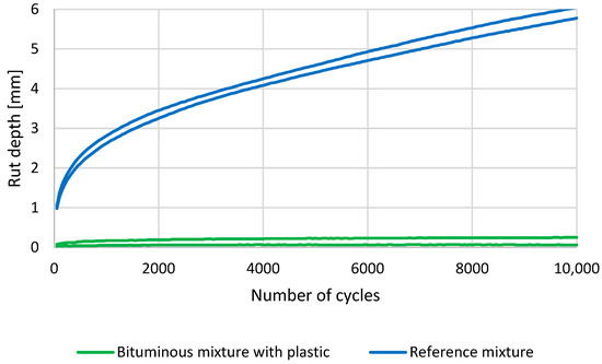 | Determination of permanent deformation Wheel tracking test (EN 12697-22) [82] | Method: Small size device; Procedure B in air Temperature: 60 °C Specimen conditioning: 6 h at 60 °C |