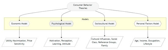 - Manuere, H.T.; Chikazhe, L.; Manyeruke, J. Theoretical models of consumer behaviour: A literature review. Int. J. Educ. Humanit. Soc. Sci. 2022, 5, 105–112. [Google Scholar] [CrossRef]