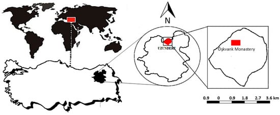 The study area consists of the Öşkvank Monastery and its surroundings in the Uzundere district of Erzurum province in northeastern Turkey (Figure 1).