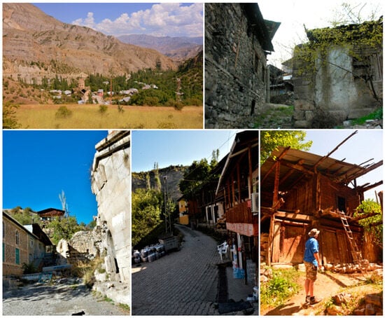 Uzundere district and the wider Tortum Stream Valley are located on a line connecting Anatolia, the Black Sea, and the Caucasus [3]. Various branches of the historical Silk Road also pass through this region, which has made it an important military and commercial transit route throughout history. The region, including the Çoruh Basin, has been called Tao-Klarjeti in Georgian since the XIXth century [61,62] and Taochian in Greek sources [62]. However, it is known that the region has been an important Georgian settlement throughout history. It has also been under the rule of Alexander the Macedonian King, Byzantines, and Arabs. The Georgians reconquered the region after wars with these communities, and eventually, the region came under Turkish rule. Tao is also a place claimed by Armenians. Armenians call it Tayk [63], claiming that it is one of the 15 traditional Armenian regions [64].