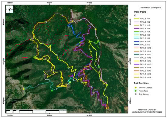 Trails can serve as a vital tool in promoting the development of semi-mountainous and mountainous areas. Establishing well-planned trail networks offers an alternative avenue for attracting tourists while simultaneously improving the quality of life for local residents. These trails not only provide access to nature but also encourage outdoor activities such as hiking, trekking, and cycling, which have seen a surge in popularity in recent years []. As interest in outdoor experiences continues to grow, the demand for well-structured and safe trails becomes increasingly important []. Properly designed trail systems enhance the visitor experience by offering safe, enjoyable routes that showcase the natural beauty of the region, while also ensuring the protection and preservation of the environment []. Furthermore, such developments can contribute to the local economy by increasing tourist footfall, supporting small businesses, and fostering a deeper connection between people and nature [,].