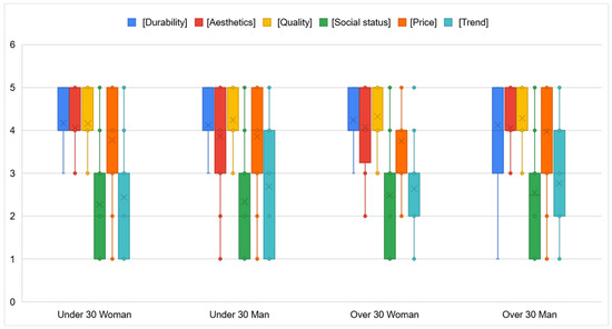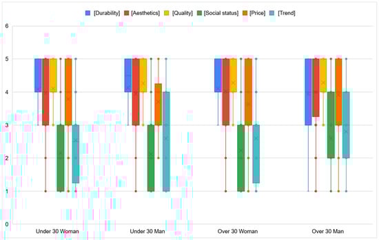 Consumer analysis is key to understanding behaviors and preferences regarding circular and sustainable fashion. Within this sector, the luxury segment is particularly significant, as it offers substantial business opportunities; however, these must be analyzed from a sustainability perspective [32,33,34]. Across all segments, durability is a primary attribute valued by consumers, and small percentages of recycled content or recyclability contribute little perceived value. Rather, consumers prefer products with 100% sustainable characteristics [35]. Transparency and accountability in supply chains can be improved with digital tools [36], providing consumers with valuable information [37,38]. Consumer collectives can also promote the diffusion of circular products and increase WTP a premium for these products [39].