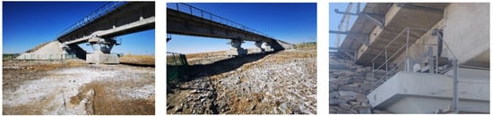 The general situation of the construction site is shown in Figure 1. The corresponding bridge No. 537 has a span style of “3–16 m general concrete T beam” with a total length of 60.04 m. There are water accumulation conditions on the surface of the grid station and the height of the retaining wall is about 0.7 m. The roadbed of the transition section is equipped with hot rod and chip slope protection.