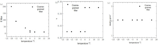 Time-varying temperature of coarse-grained soil parameters in the transition section.(a) Coarse-grained soil parameters vary with temperature (b) Coarse-grained soil parameters vary with modulus (c) Coarse-grained soil parameters vary with density.
