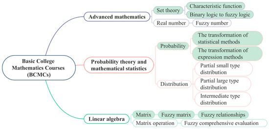 The Basic College Mathematics Courses (BCMCs) usually include three courses: advanced mathematics, probability theory and mathematical statistics, and linear algebra, which teach mathematical methods and problem-solving skills from three categories: analysis, probability, and algebra [12]. During this process, most of the content is based on idealized scenarios for reasoning, while in reality, real-world problems are much more complex [13]. For instance, in advanced mathematics, an element either belongs to a certain set or does not, with an absolutely clear definition, and this is just an ideal pattern. However, many times, we cannot clearly determine this issue, which means that many phenomena are fuzzy. Therefore, how to use learned mathematical methods to objectively depict fuzzy problems in reality, rather than absolute and clear ideal scenarios, has become a difficult and crucial problem that must be answered. Fuzzy sets theory (FST) has played an important role in promoting the development of basic mathematical theory and providing innovative opportunities for the study of uncertain mathematical methods [14]. Fuzzy sets break the strict boundaries of traditional set theory and open up a new path for the expansion of binary logic to multi-valued logic [15]. So, perhaps applying fuzzy set thought to expand the teaching of BCMC courses can address this challenge [16].