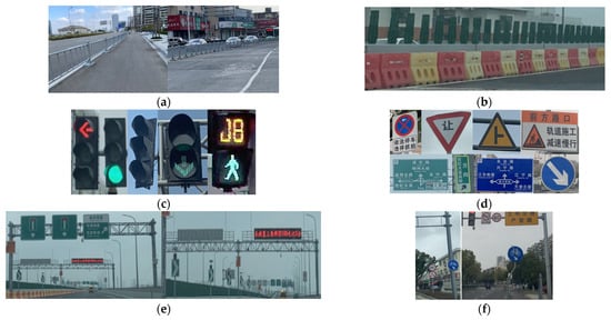 The traffic safety facility (TSF) system includes signal lights, traffic signs, pavement markings, guardrails, barriers, lighting equipment, sight-inducing markers, anti-glare facilities, etc., with the functions of traffic management, safety protection, traffic guidance, isolation, and glare prevention [1]. A TSF survey is an important part of road management to ensure the effectiveness and reliability of traffic facilities and minimize the incidence of traffic accidents [2,3]. Due to the variety of types and styles, TSF management is a labor-consuming job, as the relevant facilities’ ledgers may be lost, and errors and omissions are frequent. In addition, weather, accidents, and other reasons may also lead to damage and loss of traffic facilities. However, the management departments usually adopt manual surveys to ensure the integrity of TSFs, which have the problems of low efficiency and incomplete TSF files. Intelligent detection technology for TSFs can help to solve the above problems [4]. Intelligent detection technology can be employed to enhance the facility’s account quality and utilized to identify deficiencies in the TSF, as well as other issues, promptly.