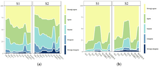 17]. According to the purpose of environmental education, it is included in subjective norms (SNs) and perceived behavioral control (PBC), two subparts for research. To guarantee the credibility and reliability of the study, this research also selected factors under the category of attitude (At). Therefore, this research conducted a questionnaire based on the theoretical model. Environmental education at the School of Water Conservancy and Hydroelectric Power (S1) of HUE is better than that at other schools, while students from the School of Mathematics and Physics (S2) of HUE come from various regions in China, and they do not have access to sufficient environmental education. Thus, the students of S1 and S2 can represent a majority of college students, so this research performed its investigation among 347 college students from S1 and S2.