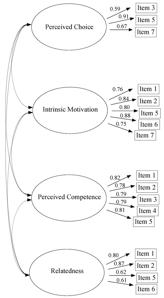3.2. Confirming the Factor Structures Associated with Respondents’ Self-Reported Intrinsic Motivation, Competence, Autonomy, and Relatedness