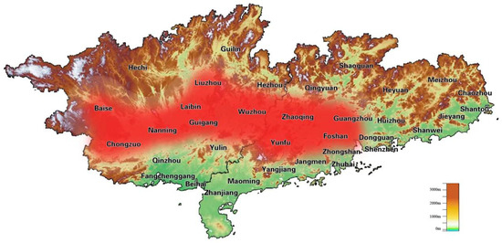 The PRWREB spans Guangdong and Guangxi, covering 11 prefecture-level cities and extending approximately 1400 km, as shown in Figure 2. This economic belt boasts abundant natural resources and a strong ecological foundation. Various factors, including regional resource and environmental carrying capacity, the economic and social development foundation, and the advancement of green policies, influence pollution and carbon reduction levels.