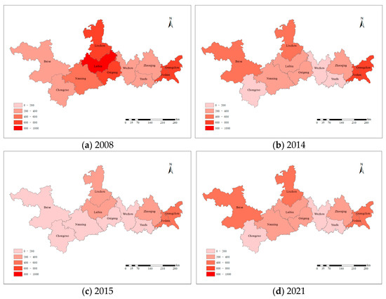 Since the China Urban Statistical Yearbook (2024), the Guangxi Statistical Yearbook (2024), and the Guangdong Statistical Yearbook (2024) were not published before the data for this study were counted and analyzed, the end of the study period was 2021. The concept of the “Pan-Pearl River Delta” was put forward by Zhang Dejiang, then Secretary of the Guangdong Provincial Party Committee, in 2003 and involves nine provinces and regions along the Pearl River, including Guangdong, Guangxi, and Jiangxi, plus the two Special Administrative Regions of Hong Kong and Macao. However, it is different from the PRWREB in the strict sense of the term. In October 2008, Guangxi proposed a major strategy to build a “100 million-ton golden waterway” along the Xijiang River, which can be regarded as a prelude to the concept of the PRWREB. Because of the large amount of data on cities and towns in the economic belt, it is difficult to obtain data at the district (county) level, and cities are both the hardest hit by air pollution in China and the main source of carbon emissions; therefore, the main focus of reducing pollution and carbon emissions must lie in the cities. Therefore, 4 cities in Guangdong (Guangzhou, Foshan, Yunfu, and Zhaoqing) and 11 cities in Guangxi (Wuzhou et al.) are considered as a whole. Data sources and indicator system variables are shown in Table 1.