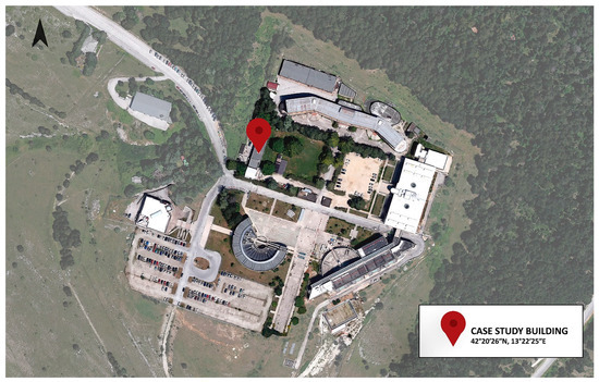 The case study chosen to develop the workflow is an office building, the so-called “Solar House”, which is part of a complex of university buildings housing the Engineering Departments of the University of L‘Aquila. The building is located in Monteluco di Roio, L‘Aquila, near a wooded area characterized by a dense presence of trees (Figure 2).