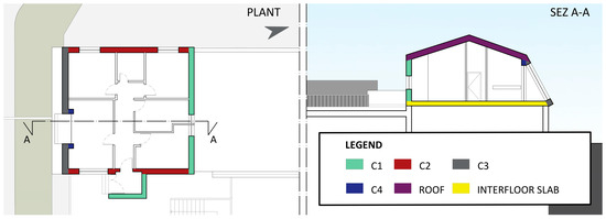 First, in the cited literature works, the three-dimensional model of the building is treated more from the geometric side, than from the semantic one. This is because BIM, in most cases, is created through laser scanning technology, which aims to convert the point cloud data into a BIM model. Although this digital representation is compatible with BIM software, it contains limited information since point clouds mainly represent geometric data [45]. Therefore, information related to the semantics (e.g., material properties and construction details) of the objects in the point clouds is missing. In our case, the model was created from scratch on the BIM by inserting in the smallest detail all the data related to the stratigraphy of the various building components. This feature is essential to have a digital twin that is rich in information and that fully reflects the characteristics of the real building.