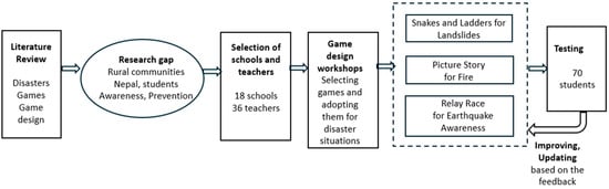 The existing literature on game-based approaches for disaster preparedness offers valuable insights into the effectiveness of game interventions, yet several research gaps still need to be addressed. Various studies have shown that games can be developed to enhance earthquake, landslide, and fire preparedness [37,38]. These studies need more coverage of rural contexts, especially in mountainous areas like Nepal, where communities face distinct challenges and vulnerabilities. Many rural schools in Nepal need internet access and more support in the availability of electronic devices such as computers, laptops, or tablets. Exploring the feasibility of analog games for rural areas with limited technological infrastructure can help bridge the gap in access to disaster-preparedness resources and ensure the inclusivity of game-based interventions in very specific rural contexts.