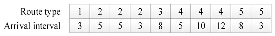 In conclusion, this study comprehensively analyzed the requirements and representation methods for calculating the passing capacity of high-speed railway hub stations under various route type operation conditions. We posit that to investigate the saturated operational capacity of high-speed railway hub stations, the operational trains at the station must adhere to a certain arrival distribution pattern to accommodate the variability in train stops along the route. Furthermore, for a detailed study of the station’s passing capacity composition, we suggest that the station’s passing capacity can be defined as the sum of different types of route trains.