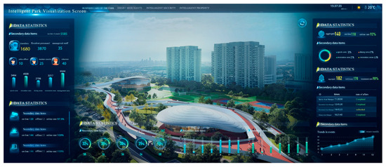 Entering the design operation and management stage of the smart city park, the digital twin platform realizes the seamless connection between the physical and virtual worlds and supports the real-time monitoring of the overall operation status of the park, covering various aspects such as energy consumption and equipment operation. Through real-time data feedback, the platform provides services such as intelligent energy management, intelligent inspection, intelligent maintenance, and intelligent fire warning to ensure the efficient and safe operation of the park and improve user experience and service quality, as shown in Figure 11.