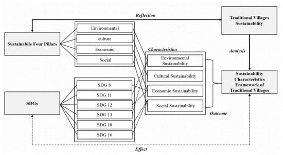 This study aims to clarify the ambiguous definition of “sustainability” in research related to traditional villages. In particular, through the exploration and positioning of the four pillars of sustainable development and 17 UN SDG goals, this study aims to clearly identify the concept of sustainability, providing a clearer and more scientific framework for the sustainability of traditional villages. It will identify the characteristics of traditional village sustainability and how they are linked to SDGs. This approach will help traditional villages develop a correct vision for their future development, avoiding conceptual abuse.