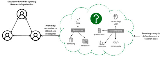 More recently, the practice of convergence research is being adopted and adapted by organizations to address the wicked problems of sustainability and other societal challenges [8]. Convergence research builds on the design thinking strategy but with an emphasis on academic transdisciplinarity through collaborative research projects that integrate different expertise, methodological approaches, and sources of data from many disciplines [9]. The goal of these collaborations “is not the reduction of multiple views into one constrained, shared space, but to stimulate the emergence of something larger than the sum of the parts through the process of bringing together and integrating bodies of specialized knowledge—to generate emergent knowledge and innovation greater than those of siloed disciplines” [10,11]. Yet even as convergence demands a broader approach to science, the wicked problems previously discussed often emerge from local conditions. Achieving sustainable outcomes depends not only on understanding the science behind environmental impacts’ issues but also on the cooperation of people with different views of governance, economics, and cultural traditions. Identifying who should be included and building relationships that encourage the adoption of sustainable practices takes time and can create a substantial research barrier [12]. Additionally, overcoming disciplinary boundaries that hinder effective and efficient collaboration involves developing a shared language and understanding of mutually relevant concepts, methods, and data [13].