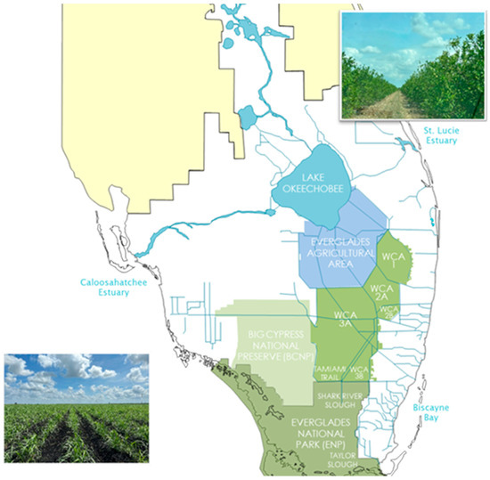 - Yoder, L.; Chowdhury, R.R.; Hauck, C. Watershed restoration in the Florida Everglades: Agricultural water management and long-term trends in nutrient outcomes in the Everglades Agricultural Area. Agric. Ecosyst. Environ. 2020, 302, 107070. [Google Scholar] [CrossRef]