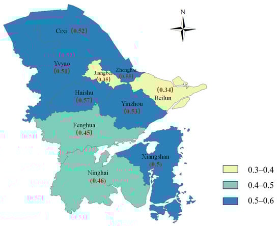 Assuming the sentiment adjustment factor () is 0.8, the sentiment tendency correction coefficients for each segment in the respective regions were derived using Equation (6) (Figure 12).