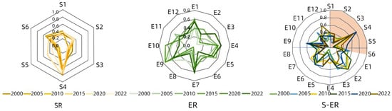 Since Holling introduced the concept of resilience into ecology in 1973 [8], the idea of Social–Ecological Resilience (S-ER) has become crucial for assessing the diversity and adaptability of Social–Ecological Systems (S-ESs), integrating both ecological and social science perspectives. S-ER is essential for addressing challenges and promoting sustainable futures, focusing on the capacity of the entire system to adapt to changes and disturbances through the interaction of social and ecological components.