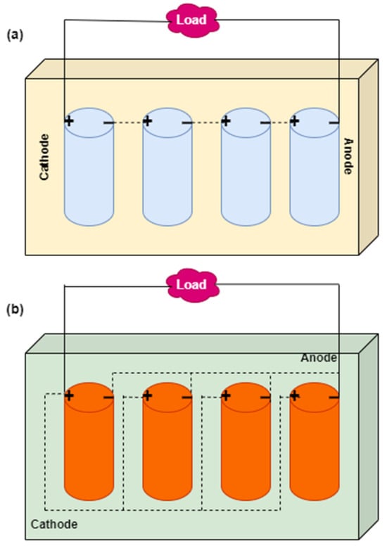 Schematic of (a) series and (b) parallel stacked MFCs.