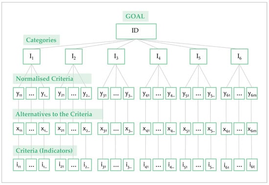 The spatial decision support methodology for identifying IPs consists of a multi-criteria analysis approach (Figure 1), which requires the construction of a decision tree consisting of the following hierarchical levels: