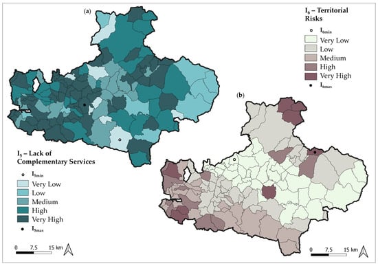 Where the verification of statistical significance is not respected (provinces with less than 105 municipalities [59], according to the rule 150 observations for 10 variables), the regional scale can be chosen as the administrative unit of reference, leaving the municipal base as the mapping unit.