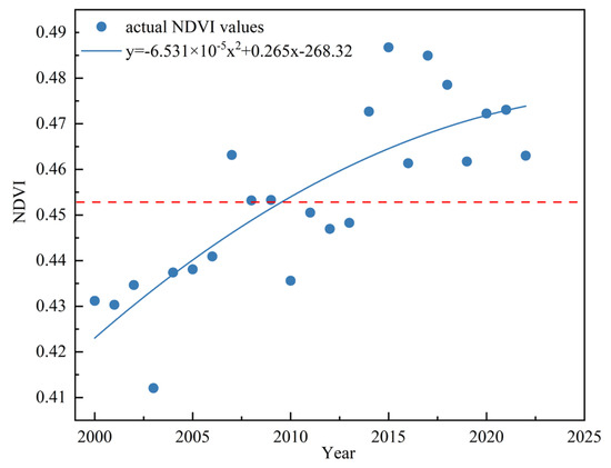 Inter-annual changes of NDVI in Nanchang City from 2000 to 2022.