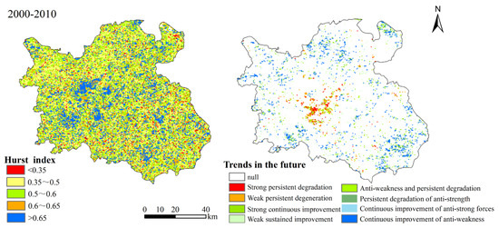 Hurst index of NDVI in Nanchang from 2000 to 2010 and future trends.