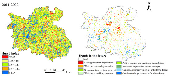 Hurst index of NDVI in Nanchang from 2011 to 2022 and future trends.