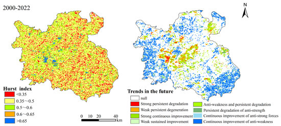 Hurst index of NDVI in Nanchang from 2000 to 2022 and future trends.
