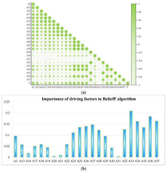 The ReliefF algorithm, an extension of the original Relief algorithm, is a feature selection method based on traditional filter-based techniques. It enhances learning algorithms by selecting the feature subset with the highest information content from the original set of features [44]. The ReliefF algorithm works by assigning different weights to driving factors based on the discriminative ability of features for each neighboring sample. Due to its efficiency and effectiveness, it has been widely adopted in the field of feature selection. Additionally, some of its variants and improved algorithms focus on addressing specific issues, such as handling multi-label data or working with high-dimensional, small sample datasets [44].