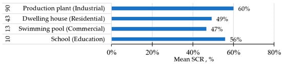The research that served as the basis for this article has been conducted within the framework of the Driving Urban Transition Partnership project “Positive Energy Districts Driven by Citizens” (PERSIST) [11], which aims to evaluate existing schemes directly or indirectly supporting investments at the consumer level into assets that contribute to long-term changes in electricity production or consumption. The self-consumption (SC) value is crucial for evaluating support schemes because it directly affects the economic viability and effectiveness of renewable energy investments. By understanding the potential for on-site energy generation and consumption, policymakers can design incentives that maximise financial benefits for individuals, encourage energy independence, and promote sustainable practices.