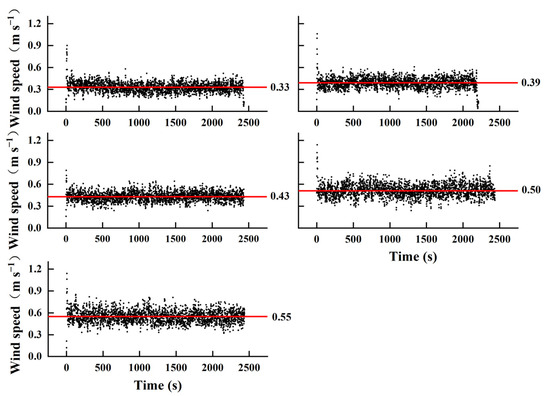 | Wind Condition | Wind Speed (m s−1) | Standard Deviation (m s−1) |